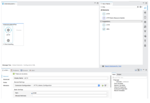 In the Mule Palette, select connectors and drag and drop HTTP Connector in to the flow designer. First we need to config the HTTP request service before using it. Click on the http connector and later in the HTTP tab below. Add a new HTTP Listener Configuration and set the port to 8081, back into the http connector set the Path to "/order".