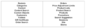 SCC offers the OpenCommerce API. “(OCAPI) enables you to access resources using HTTP requests and HTTP responses. Each resource is addressed by its unique URL, which includes the API version. Data is transported using request or header parameters, or within the request body as a JSON document with a defined structure. OCAPI is divided into different APIs: the Shop API allows a client to interact with the system as a shop customer or as an agent shopping on behalf of a customer, the Data API gives create/read/update/delete access to system resources, and the Meta API can be used to get a formal description of the Open Commerce API including custom attributes.” [1]