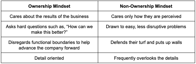 Ownership is one of the key pillars we discuss throughout our MIT program. All good managers and leaders take responsibility not only for their work, but also for the success of their team and company. Having an ownership mindset is one of the most valuable things you can offer a client. Here are some behavior differences between those that have it and those that don’t: