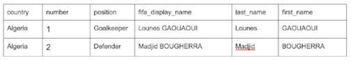 As you can see, we can now use a method called country, or any other row heading in the CSV such as position or last_name,to filter the the data by column value.